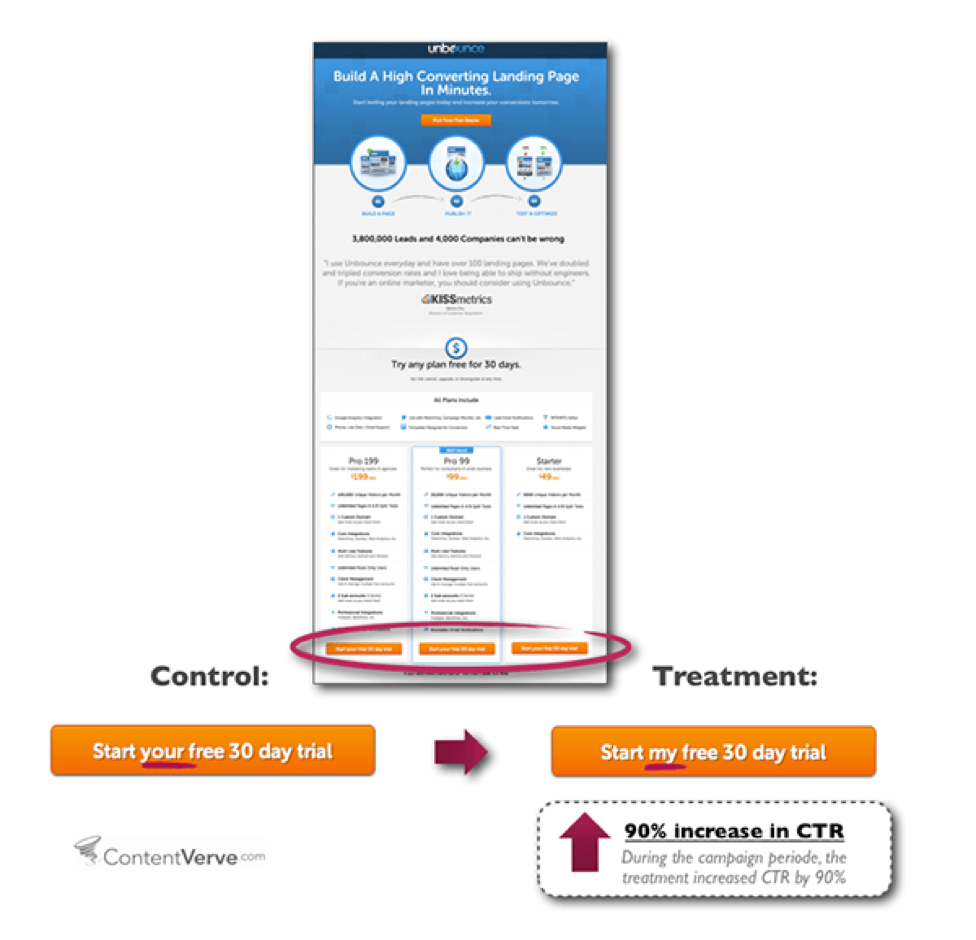 | Chỉ bằng "mẹo" nhỏ này (thay một chữ "My" thành "Your") đã giúp ContentVere và Unbounce tăng lần lượt 24% và 90% tỉ lệ chuyển đổi trên Landing Page! |